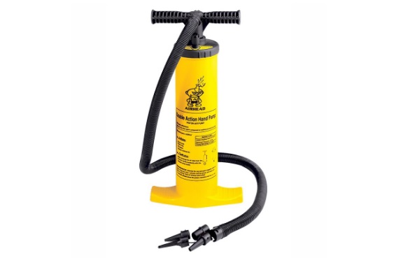 The Hand Pump delivers a continuous stream of air on both the up and down strokes. Simply turn the release valve counter-clockwise and you’re pumping air only on the down-stroke. This is a great option when your inflatable is almost full and there’s back pressure. Four universal valve fittings are included to fit Boston valves and stem valves. The accordion-style hose stretches to 5ft. long and interlocks to the pump, so that it doesn’t fall off while you’re pumping. Volume is 2 liters per stroke. Very effective for “topping off” large units, since peak pressure is an impressive 14 psi.