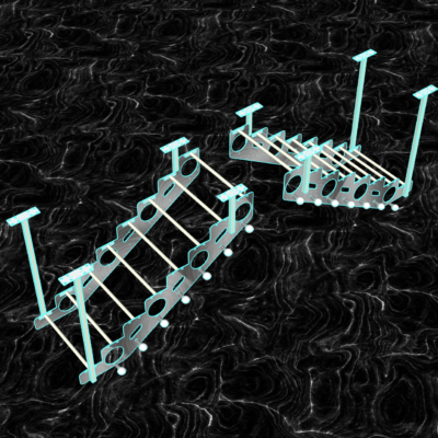 - Devil’s Hop with Devil’s Pegs – Includes a free floating carbon fiber bar. This version is similar to a flying bar obstacle but ascends rather than remaining horizontal. The trek isn’t over once you reach the top, the athlete must leché to the other set of steps and make his way back down.