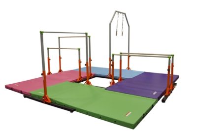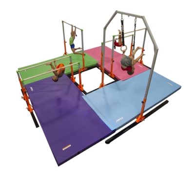 • 405-350 – ELITE™ KIDS GYM Four-Station Circuit with Uneven Bars, Rings, Parallel Bars, High Bar (laminate), and Mats