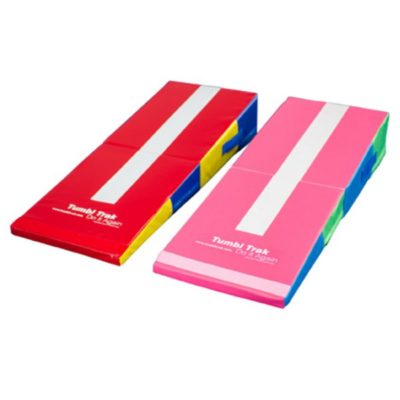 Keep it folded and use the colorful block as a stable place for kids to stand on, jump off or cartwheel over. Velcro on the base surface, will help keep the mat firmly in place on closed loop carpet or matched up next to other mats. The Folding Mini Ramp features a convenient hook Velcro flap to secure it for uphill or downhill play. Use the same Velcro flap to hold the block securely folded to use it standing up on any side.