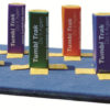 Velcro flaps on one end of each Fun Stick allow them to stand up on closed loop carpeted surfaces. Also, there is hook Velcro on one full side of the Fun Stick which allows it to be attached to a closed loop wall surface.