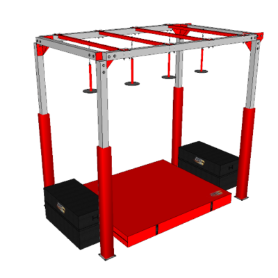 The High unstable discs present a challenge for even the most seasoned Ninjas. The discs are constructed similarly to our floating pole obstacle except the pole is now around 1.5ft and hang at a height where the ninja now grasp the obstacle with their hands. There are a few ways to get across these pesky little guys which allow your Ninjas to learn a few different techniques and body movements. The poles are steel and powder coated to the color of your choice and the disc is made of a dense, high quality wood.