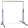 Why not continue training gymnastics at home with the Adjustable Bar! The Adjustable Bar is the perfect home gymnastics bar created with heavy gauge steel and is meant to last! the 1-1/2? steel uprights will adjust between 3ft – 5ft (36, 42, 48, 54, 62? high). The base is 4? feet wide and will fit a normal 4? x 8? Panel or Landing mat. The wood bar is 1-1/2 inches round with 100lb weight limit and is intended for beginner to intermediate gymnasts. If your gymnast is 70lbs+ and/or level 3, we recommend adding the base extensions more greater stability.