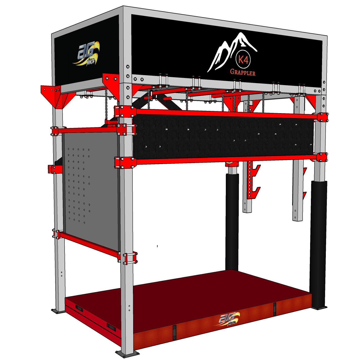 The K4 Grappler is the ultimate strength and climbing trainer for your Ninja Warriors! Using the 4″x4″ Steel Katana Frame, The Grappler features 8 sport obstacles configured within a 6’x10′ footprint.