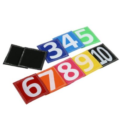 Velcro numbers are easy to use and have endless benefits. Use the numbers in order, 1-10 to organize your stations into an easy sequence of skills. Teach preschoolers about counting and number identification. Mark a starting spot on the floor or measure a long reach or jump! There are oodles of games to be played with numbered markers!